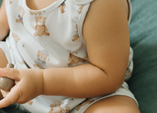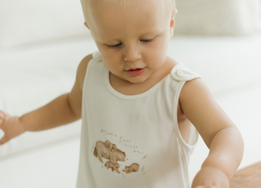Tender care for sensitive skin begins with our hypoallergenic baby clothes.